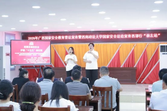为深入贯彻落实总体国家安全观,按照司法部2026年全民国家安全教育日普法宣传活动工作部署,4月14日至16日,重庆市司法局、广西壮族自治区司法厅联合西南政法大学,组织重庆市大学生总体国家安全观宣讲团赴广西崇左,深入高校、机关、乡村开展国家安全法治宣传教育宣讲活动。
