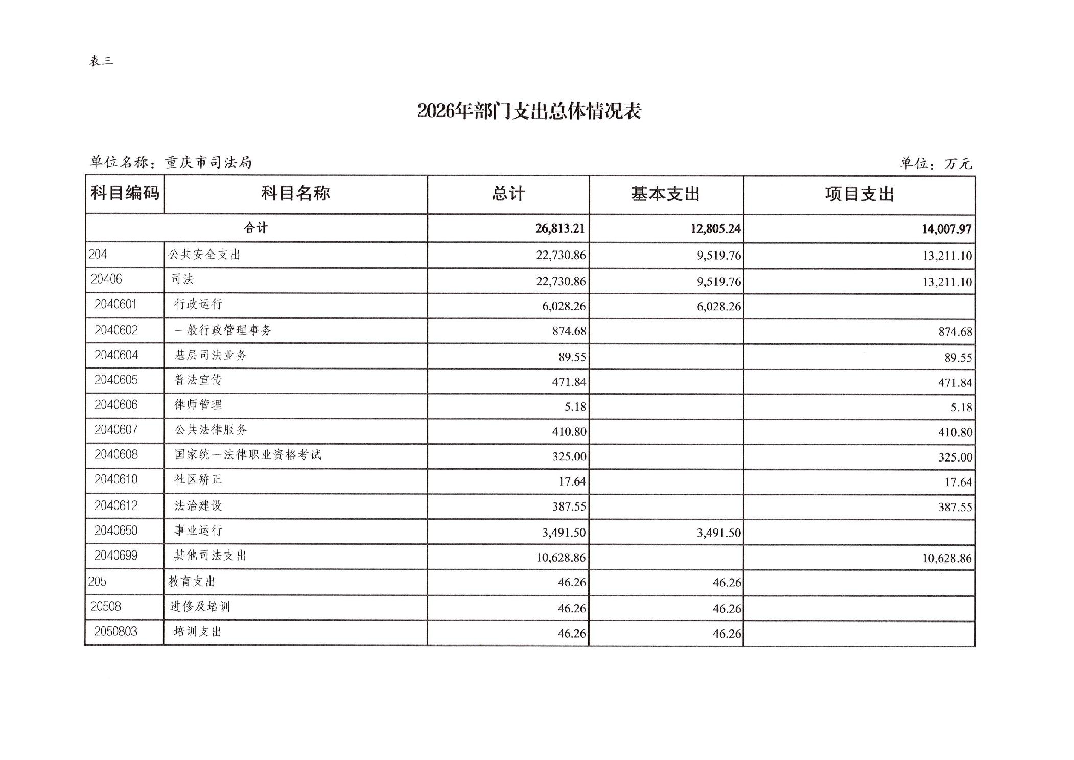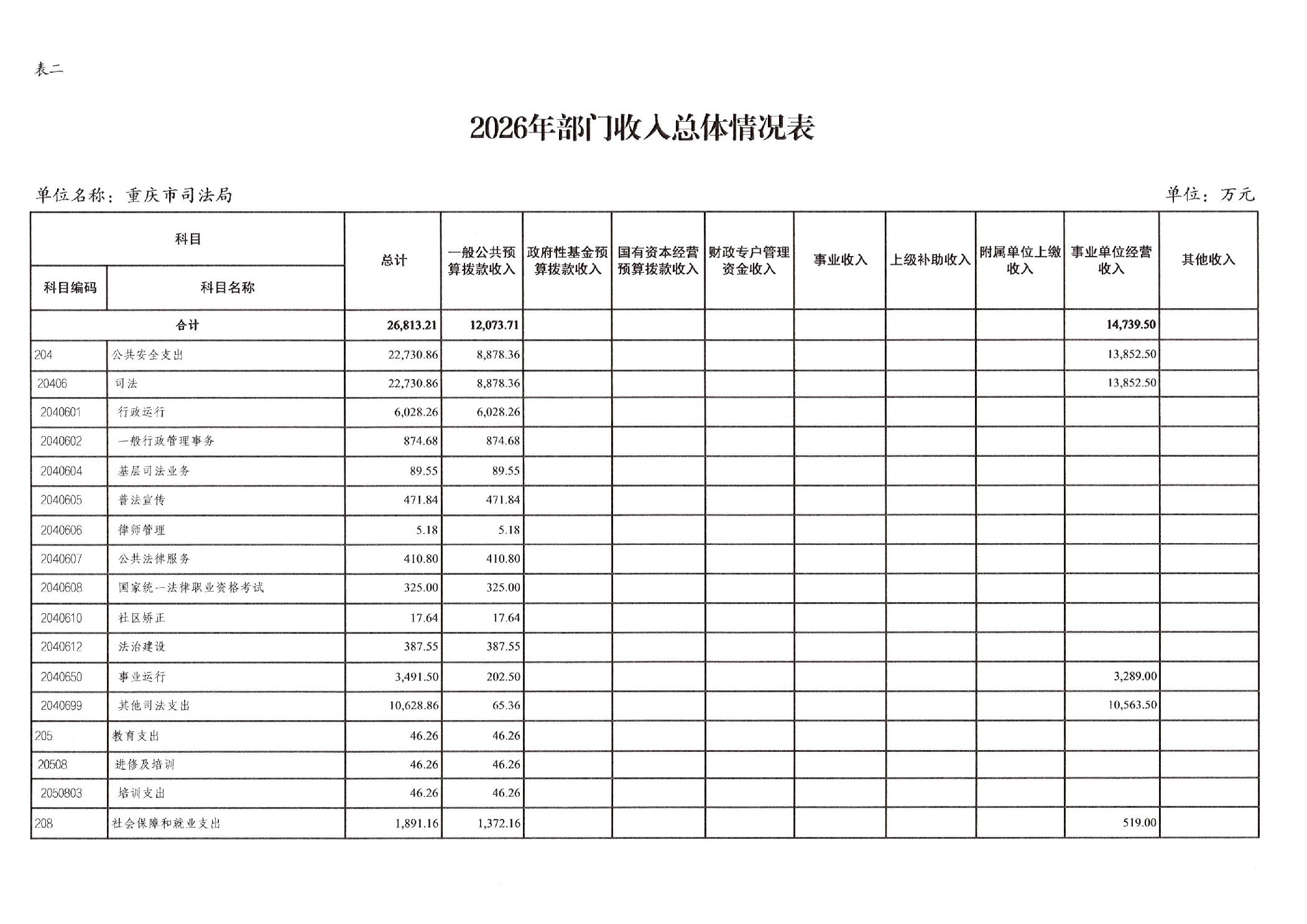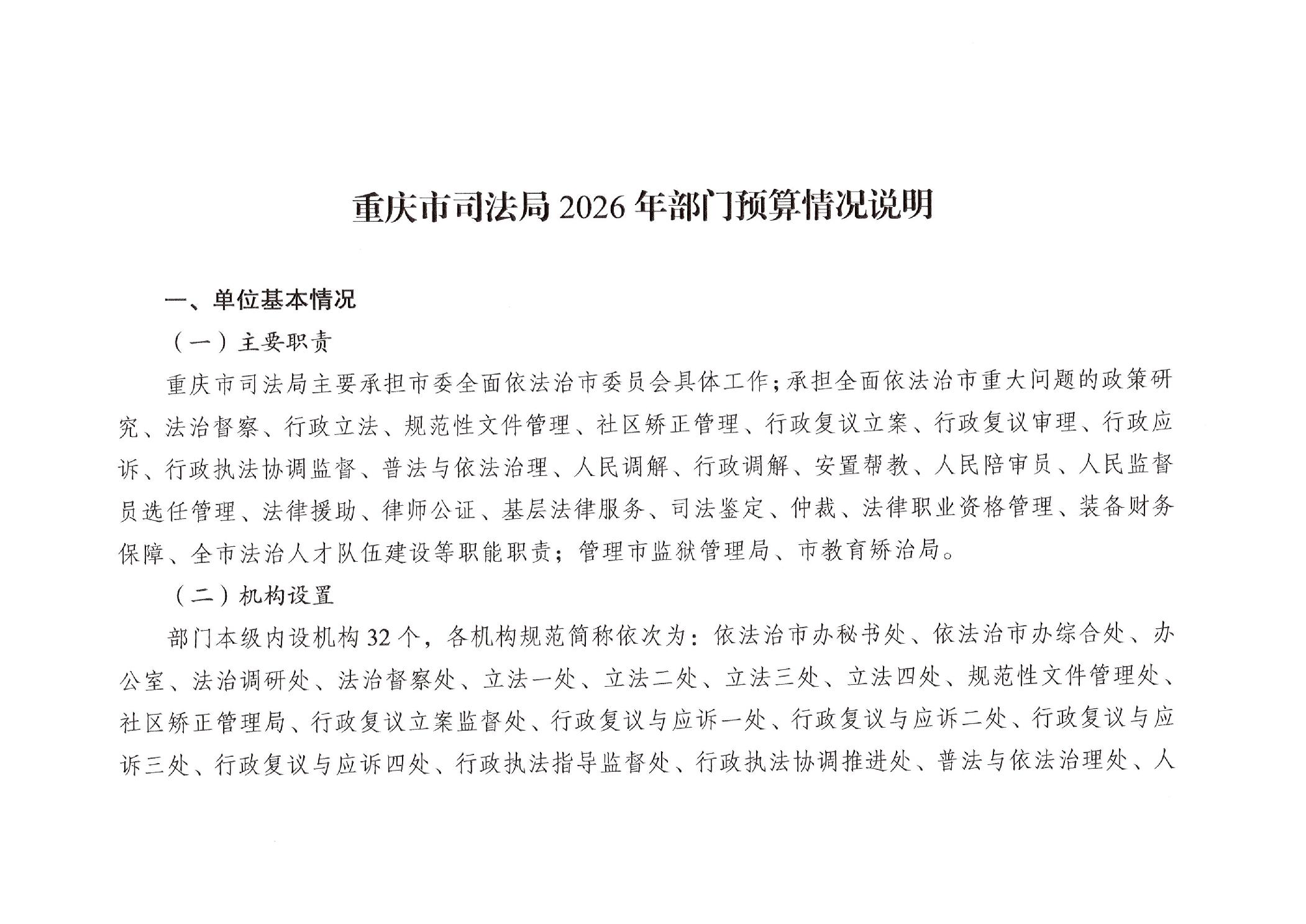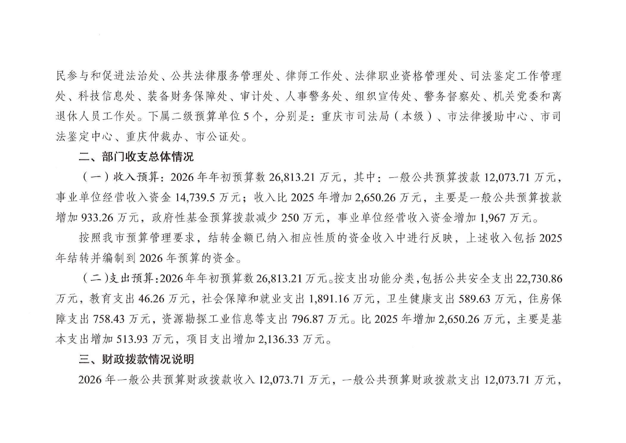 重庆市司法局2026年部门预算情况说明