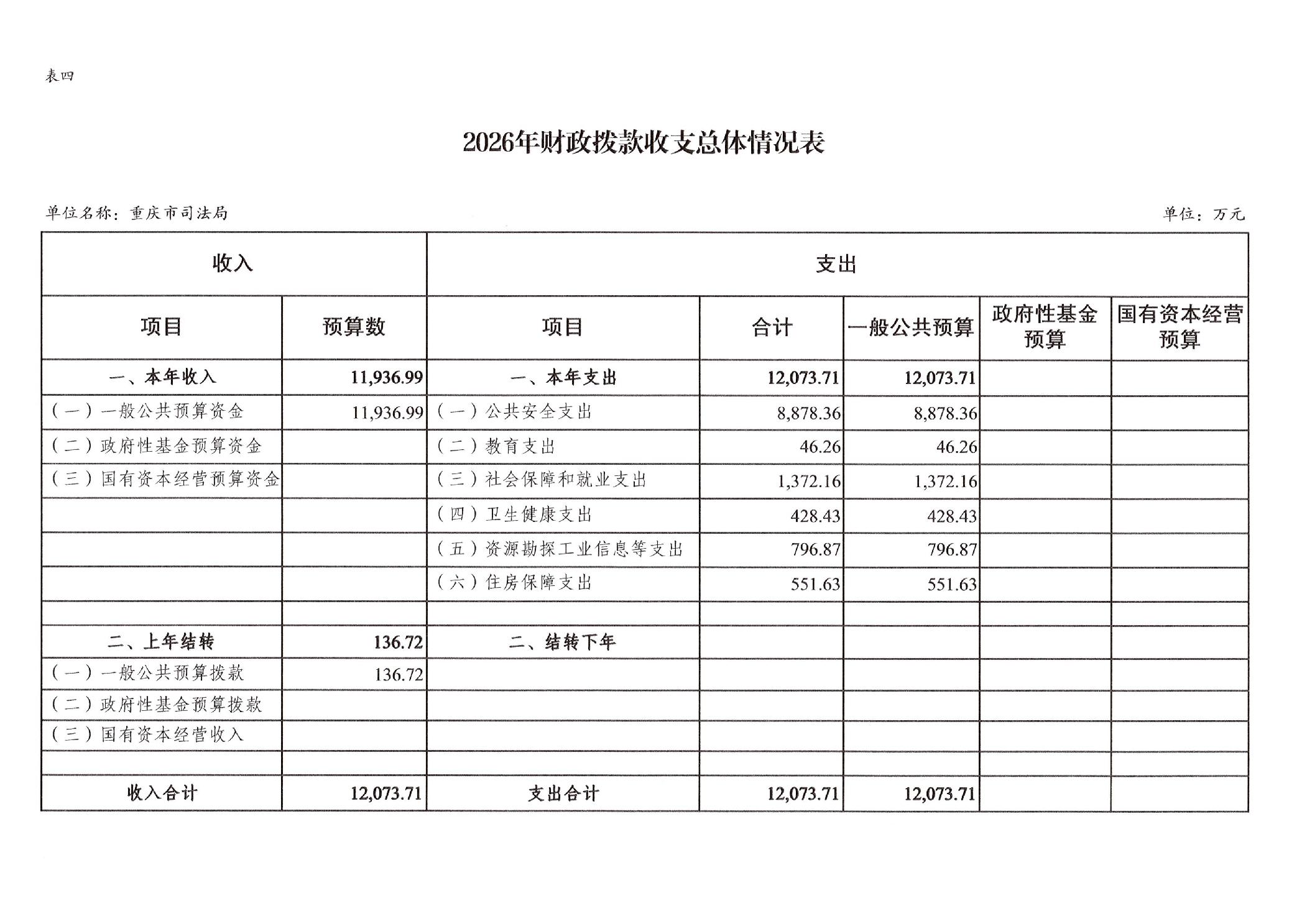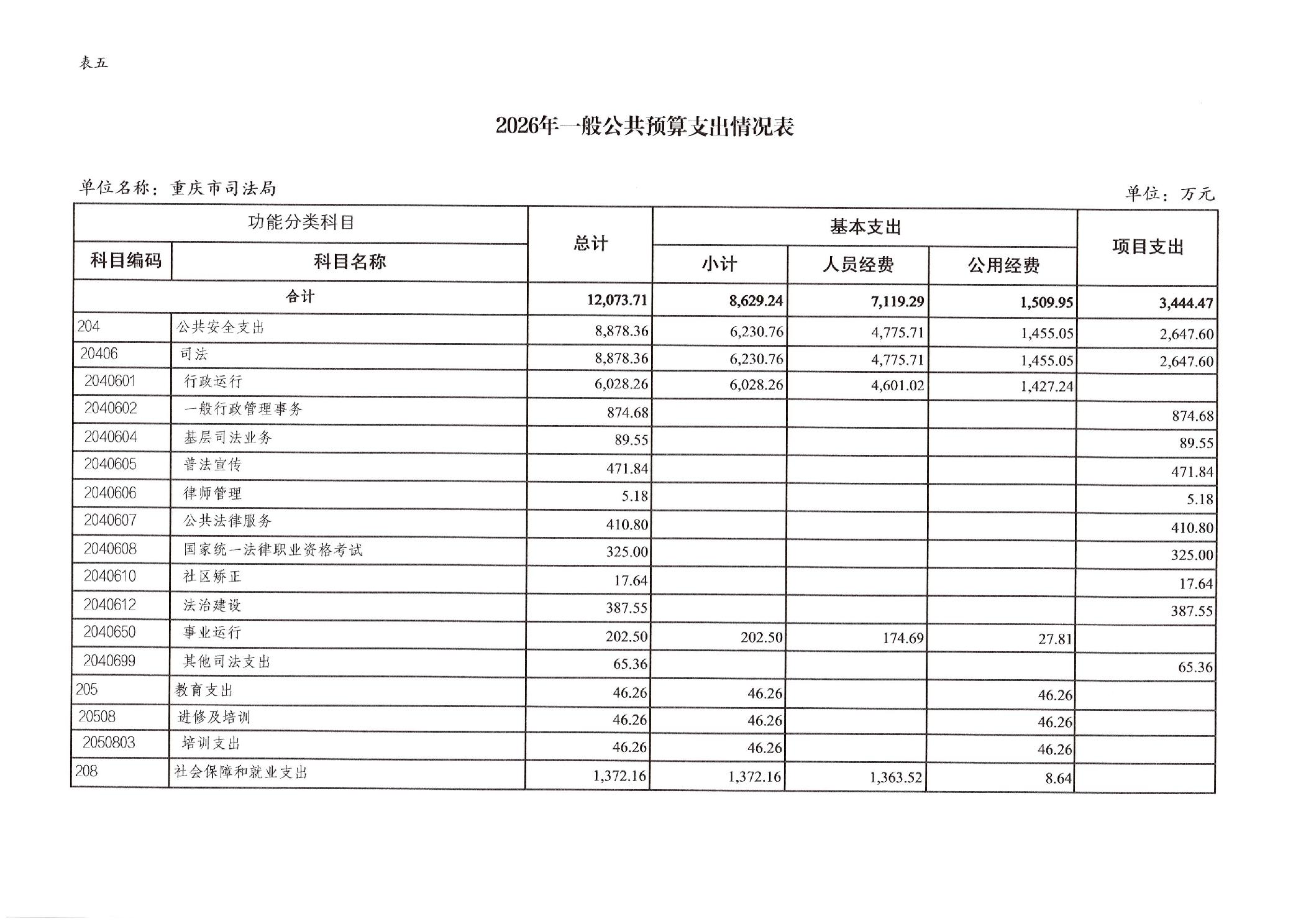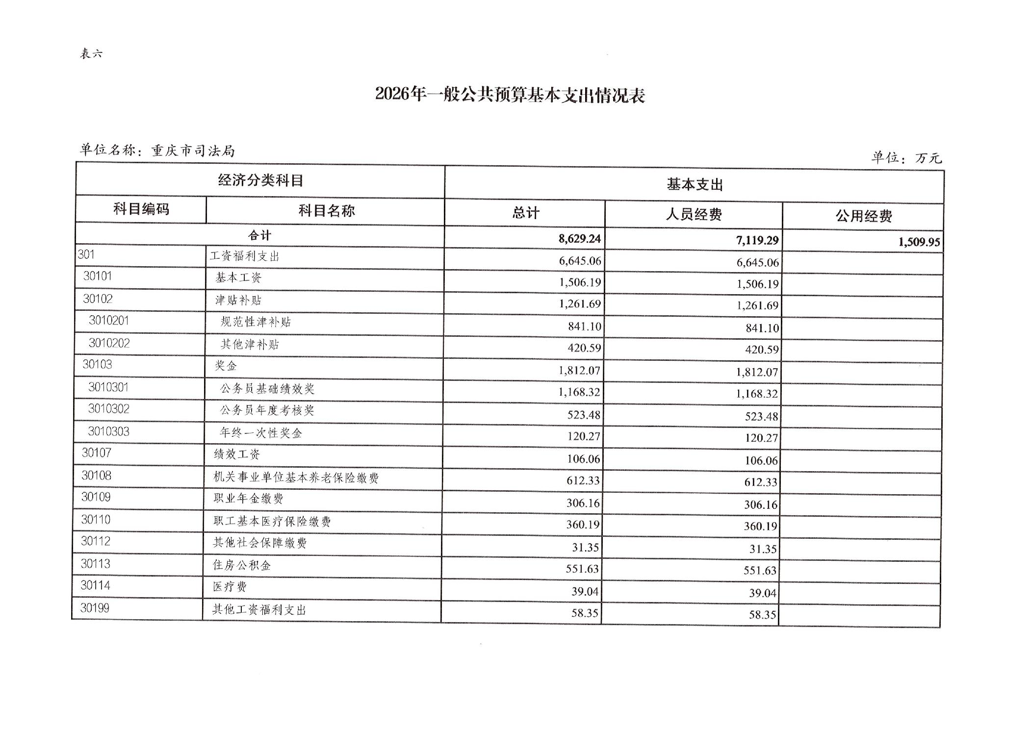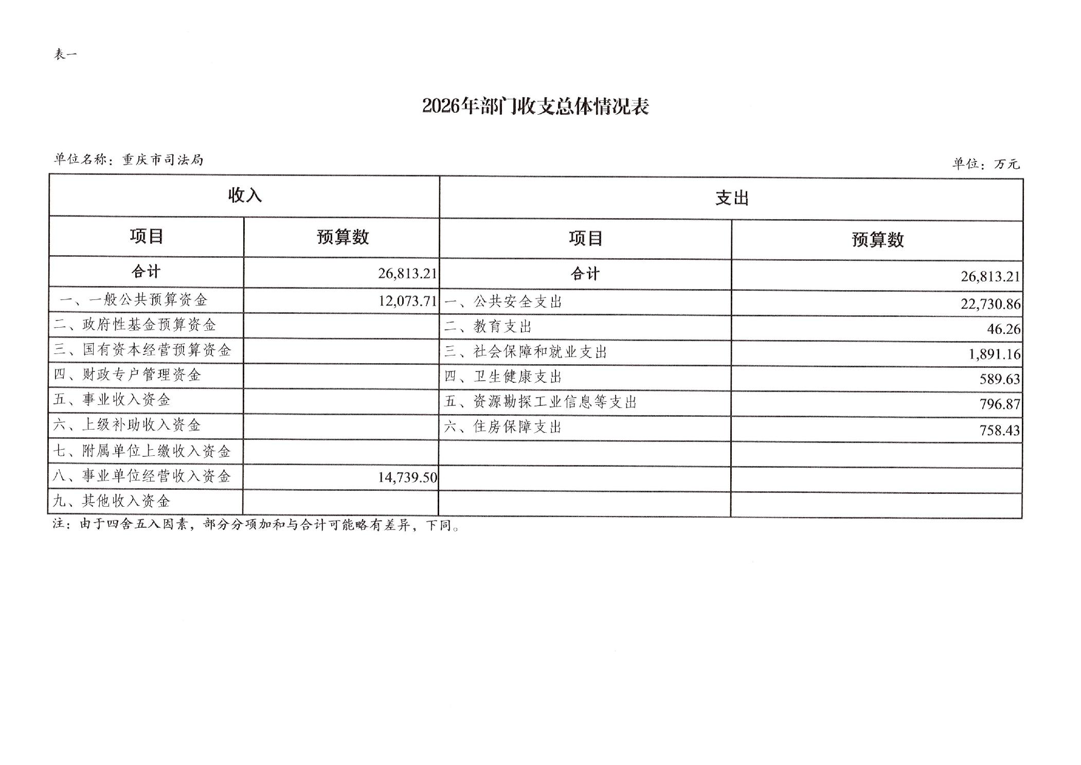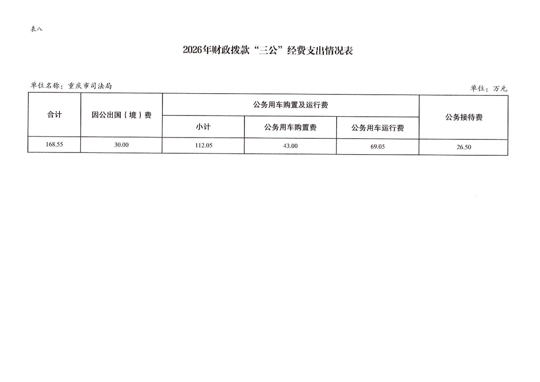 重庆市司法局2026年部门预算情况说明
