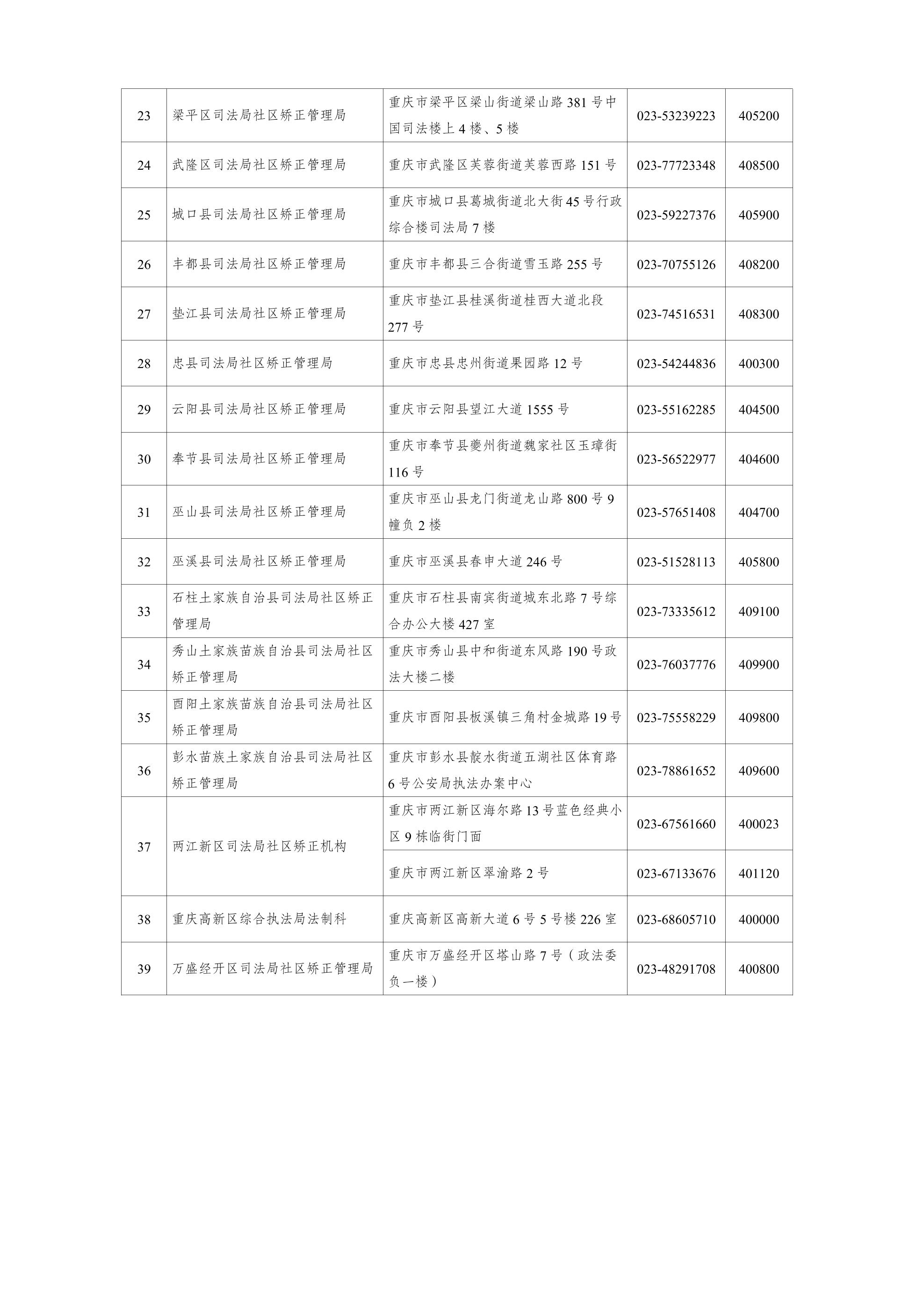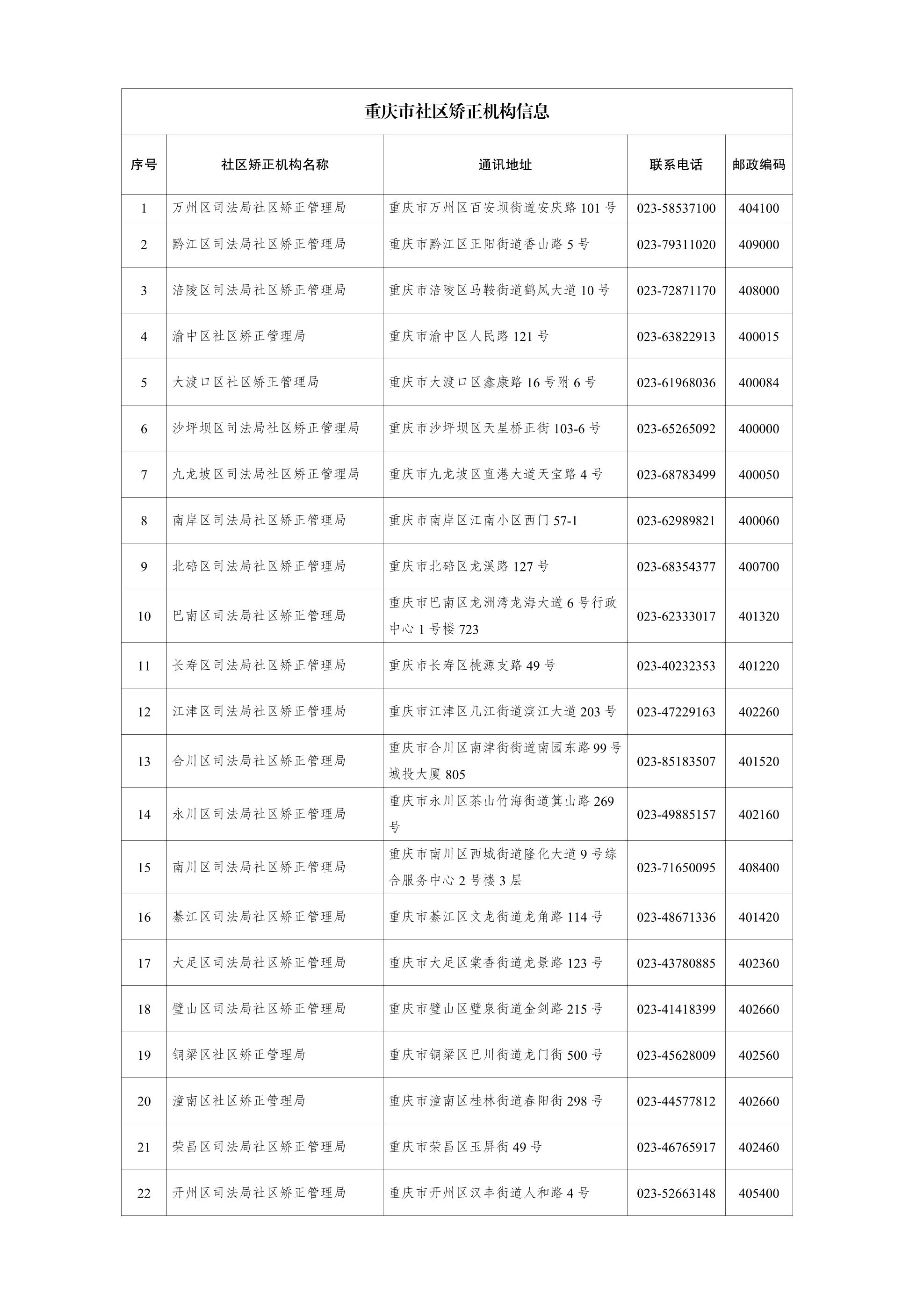 重庆市社区矫正机构信息